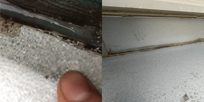 床の端や細かな溝には、細いひびや段差ができやすいため、コーキング材を充てんして表面をなめらかに整えます。